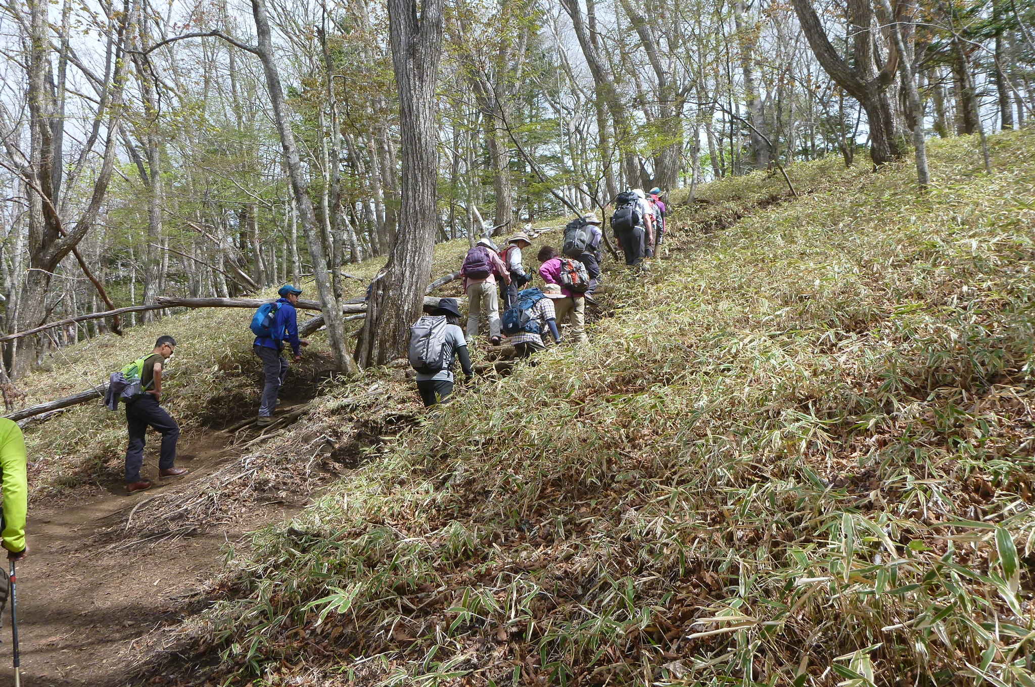 クラブ始まって以来の大勢の参加で賑やかな例会となりましたが、これ以上参加者が増えますと安全面で課題もあります。このため新規会員募集は当面見合わせ、募集再開は参加者の動向をみながらにしたいと考えています。これからは梅雨の時期になりますが、それが過ぎれば待望の夏山が待っています。7・8月例会は昨年の反省を踏まえ、すでに準備に入っていますので夏に照準を合わせベストの体調となるよう各自体力作りに励みましょう。(ひ)